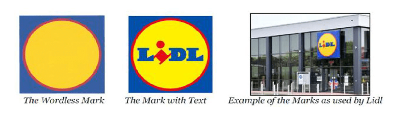 Lidl alleges that use of the Sign infringes its registered trade marks (shown below), and that it amounts to passing off and copyright infringement, claiming Tesco is ‘seeking deliberately to ride on the coat tails of Lidl’s reputation as a “discounter” supermarket known for the provision of value’.