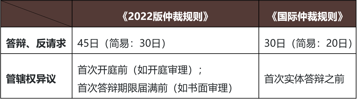 第一,缩短答辩、反请求的提出期限。对比《2022版仲裁规则》,《国际仲裁规则》第十六条将答辩、反请求的提出期限从45日缩短为30日(简易程序从30日缩短为20日)。这不仅加快了程序启动阶段的推进节奏,更有助于促使当事人尽早明确争议焦点,提升后续仲裁庭审理的针对性与效率。