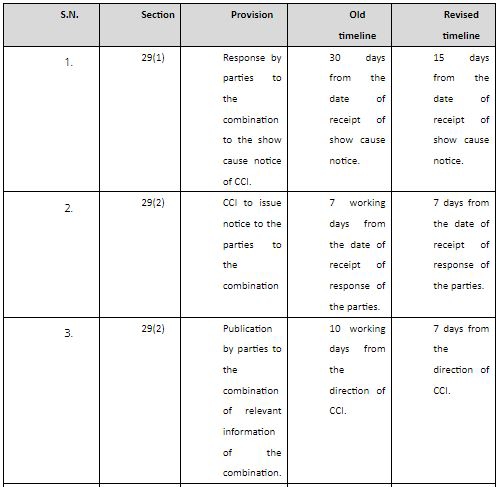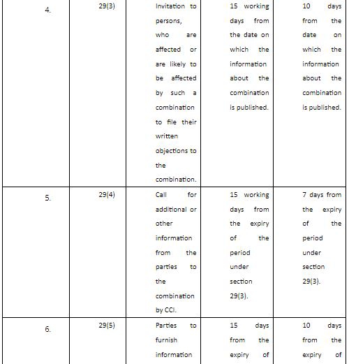 Certain changes in the procedures and processes have been introduced in relation to the investigation of combinations. A summary of the changes in timeline are given below: