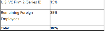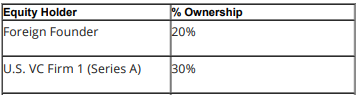 Example 4: Cap table of a startup. If foreign founder becomes a U.S. taxpayer, startup is 65% owned by U.S. shareholders, and is thus a PFIC.