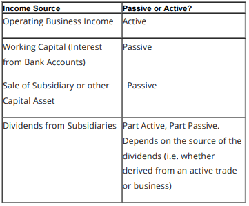 - Cash is a passive asset, even if it is held as part of the corporation’s working capital.