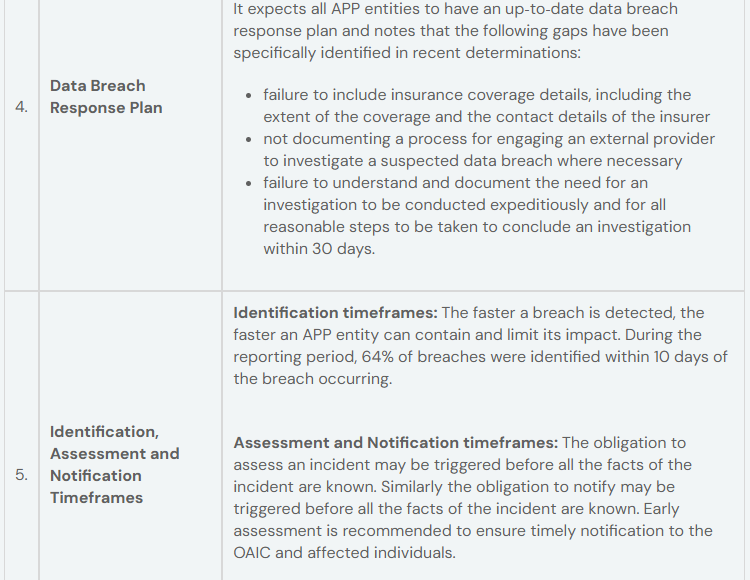 - APP entities must have an established data breach response plan in place to enable effective and timely assessment and notification in accordance with their regulatory obligations.