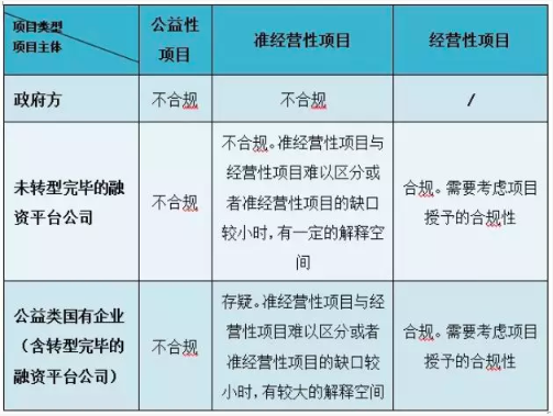如前所述,自2015年1月1日起,融资平台公司不再承担政府投资项目的融资职能。在公益性项目和准经营性项目的F+EPC中,未转型完毕的融资平台公司作为项目单位的,容易被认为属于融资平台公司仍然承担政府投资项目的融资职能,合规风险较大。