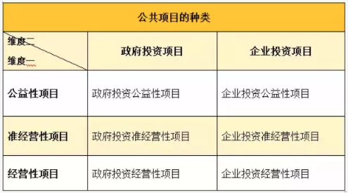 根据上述对投资项目的分类,就公共项目而言,具体种类可以以下表表示: