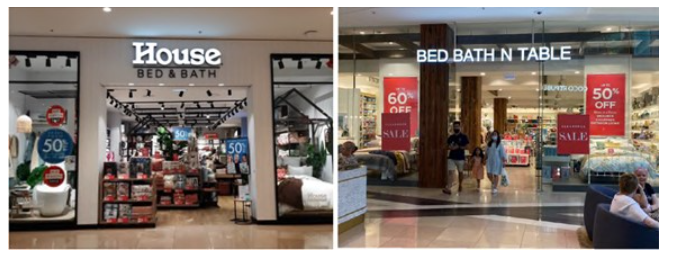 - BBNT Retail Stores commonly had large front windows through which “Hamptons style” beds could be seen, whereas House Retail Stores generally had a “discount” look; and