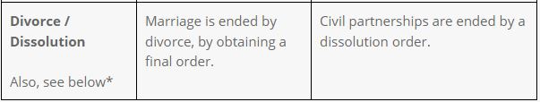 Confusion continues to surround the difference between same-sex marriages and civil partnerships. Fundamentally, from a legal perspective, no major differences between the two exist. There are however some subtle differences which are summarised in the table below: