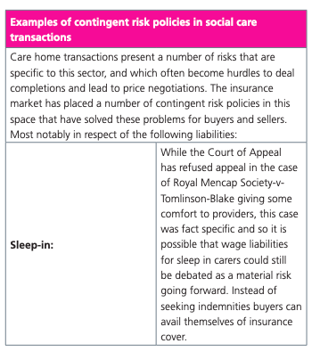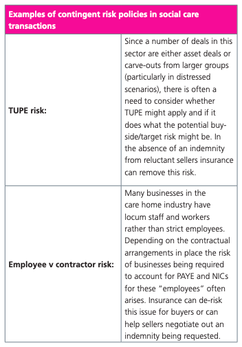 Whether buying or selling a single or multiple social care businesses, M&A insurance can be an extremely useful tool in overcoming potential deal roadblocks and increasing efficiency (particularly in the context of accelerated sales) and can make a bidder's offer more attractive where there is strong competition for the asset on sale.