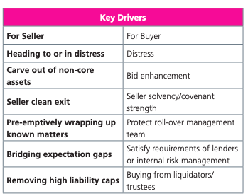 These types of policies are typically used when the seller, management, or the insolvency practitioner appointed in the insolvency proceeding are not willing or able to give any warranties in the SPA (or are willing to give only title and capacity warranties or certain operational warranties).