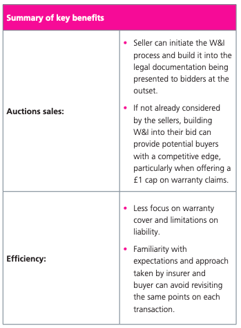 As noted above, W&I offers a number of benefits to both buyers and sellers, and particularly where multiple transactions are envisaged.