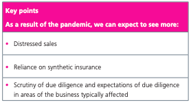 Regardless of any mitigating factors, there is likely to be a shift in balance in the M&A market with buyers being able to acquire businesses for less than they would have prior to the pandemic. While this should be a positive for insurers, where valuations go down significantly insurers could find themselves insuring a large business from an assets perspective for a low value and find themselves with greater exposure.