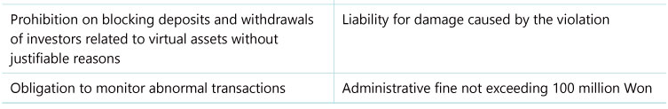 On an important note, under the current version of the 2023 Proposal, administrative fines, penalty, and fines below will be imposed on VASPs who engage in unfair trading practices or violate various obligations. Therefore, it is recommended for market participants to prepare internal control systems and introduce employee training programs before the legislation comes into effect.