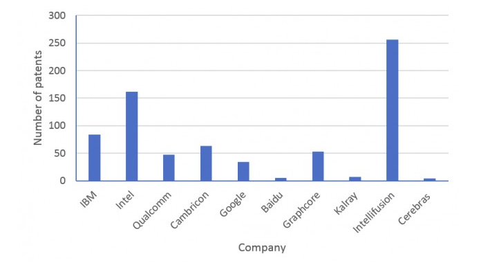 Analysis of the IP portfolios and their positioning in the AI chips space shows that innovation is being driven by new technologies, the entry of new competitors into the market, the pursuit of diverse applications and various approaches to attain higher processor speeds and lower power. Traditional semiconductor processor design companies such as Intel and IBM have created large patent portfolios that highlight contrasting priorities and innovation focus. They compete against other semiconductor firms such as AMD, NVIDIA, and Qualcomm while facing challenges from new competitors in the space, including non-traditional semiconductor companies seeking to enhance their position in cloud computing (eg, Google, Microsoft, Graphcore, Cerebras, Cambricon, and Amazon).
