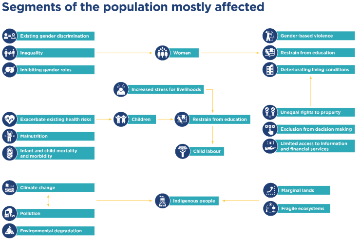 The conversation about the impact of climate change traditionally revolves around the scientific, economic, and environmental aspects. Only recently has more attention been given to the human and social aspects, particularly to specific segments of the population as attention has been focused on increasing levels of evidence about the impact on living conditions and human lives.