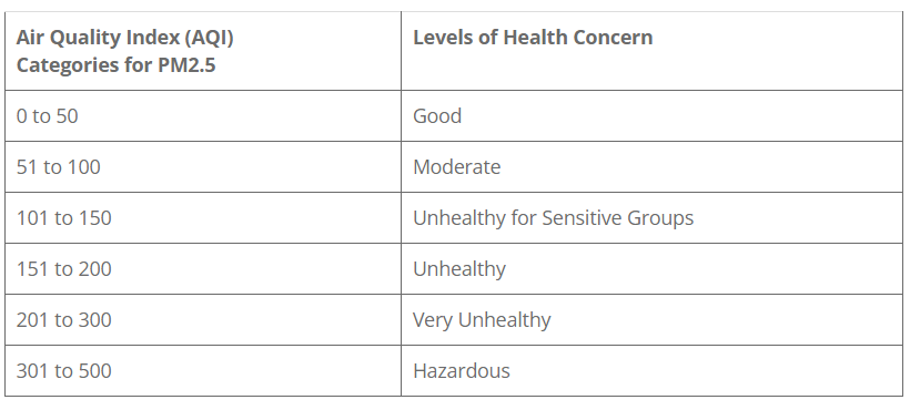 The current AQI, which the general public is now becoming aware of from frequent references in the last few days on local and national television weather forecasts, is divided into six categories as shown in the table below.