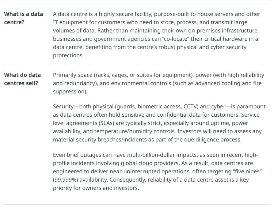 Data centres are not simply digital infrastructure or technology assets – they also share characteristics with traditional infrastructure and real estate assets, attracting a diverse spectrum of investors with varying priorities.