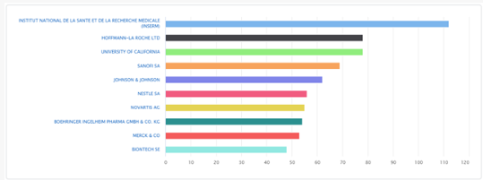 Top 10 applicants in Pharmaceuticals (From the EPO: https://www.epo.org/en/about-us/statistics/statistics-centre#/technologyfields?code=16)