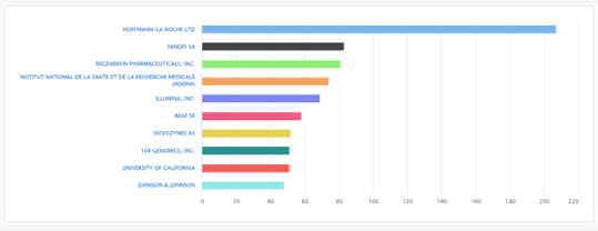 Top 10 applicants in Biotechnology (From the EPO: https://www.epo.org/en/about-us/statistics/statistics-centre#/technologyfields?code=15)