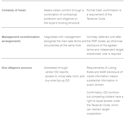- Whilst it is extremely frustrating to expend significant time and expense on a transaction that does not ultimately succeed because a higher bid is made, this is no different to a private auction where a PE sponsor carries out all the work and loses out in the final round or in a contract race after final bids (other than the fact that it is a public process).