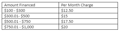 - A monthly installment account handling charge, not to exceed the following amounts:
