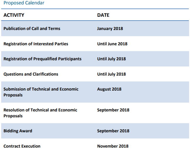 • The contract would be awarded through an international public bid called by the Ministry of Energy.