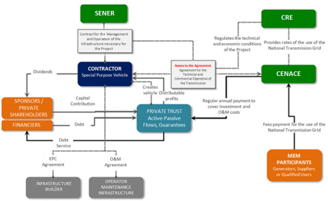 • Contractor’s main rights: Receiving from the National Energy Control Center (NECOCE) the regular annual contract payment requested in the economic proposal, with which it would cover its operational costs, pay debt service to its financiers and recover its capital investment. Such payment would be subject to an annual readjustment based on the increase of the Mexican NCPI.