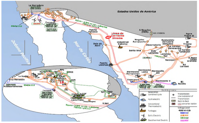 • Connecting the BC with the SIN through a direct current link between the SE Cucapah in the Mexicali area and the Seri in the Hermosillo area.