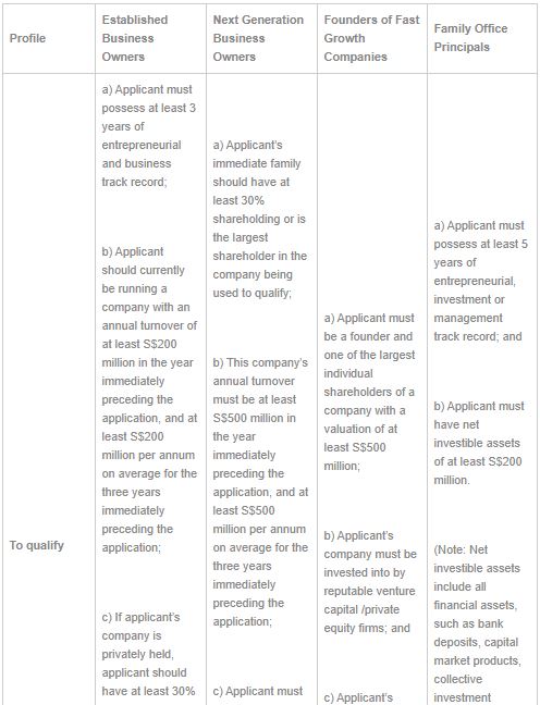 - Have a last drawn fixed monthly salary (in the last 1 year) of at least S$20,000 (or equivalent in foreign currency). Candidates or business owners with annual income in excess of S$240,000 (or equivalent in foreign currency) will also be considered;