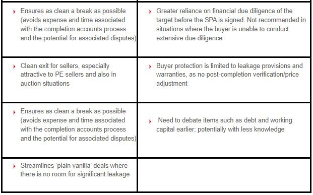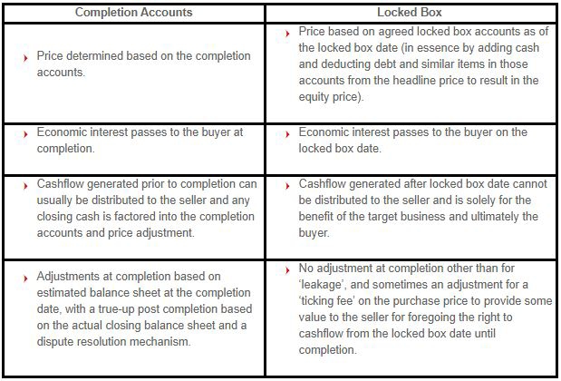 A locked box mechanism is an alternative pricing mechanism to completion accounts. The main objective of the “locked box” mechanism to provide certainty on the price at the point at which the SPA is signed.