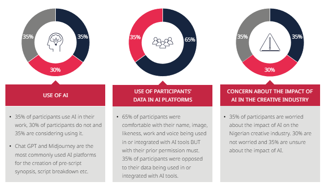 All this raised our curiosity as to the use of AI in Nigeria’s Film and TV industry and the concerns if any. We conducted a survey on a group of creatives including film directors, producers, script-writers, film and TV crew, post-production personnel and YouTubers, with some very interesting results.