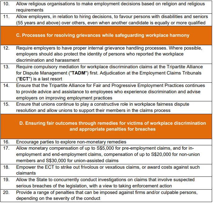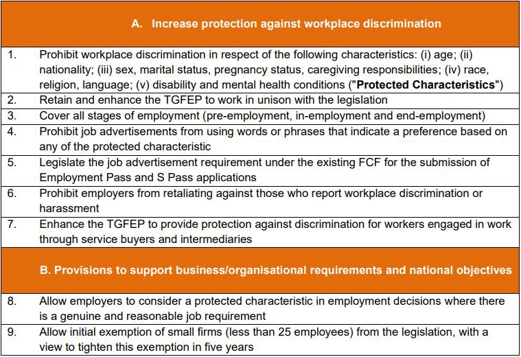 Notably, the Committee recommends that legislation be enacted to implement its recommendations to tackle workplace discrimination. The proposed legislation will run in unison with the TGFEP. The recently enhanced TGFEP can be accessed here.