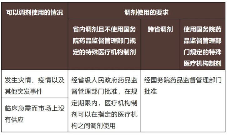(b)医疗机构制剂只能凭医师处方在本医疗机构使用,不得在市场上销售或者变相销售,不得发布医疗机构制剂广告。以下情况可以调剂使用(新《条例》第五十九条):