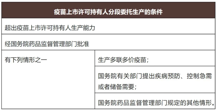 疫苗不同于一般药品,有着更严格的分段生产适用条件。根据新《条例》第三十三条,疫苗上市许可持有人分段委托生产,需同时满足以下条件: