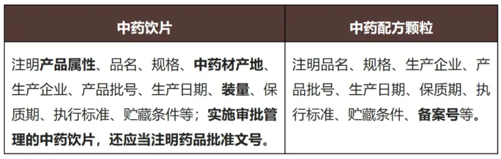 新《条例》对于中药饮片、中药配方颗粒的标签要求如下