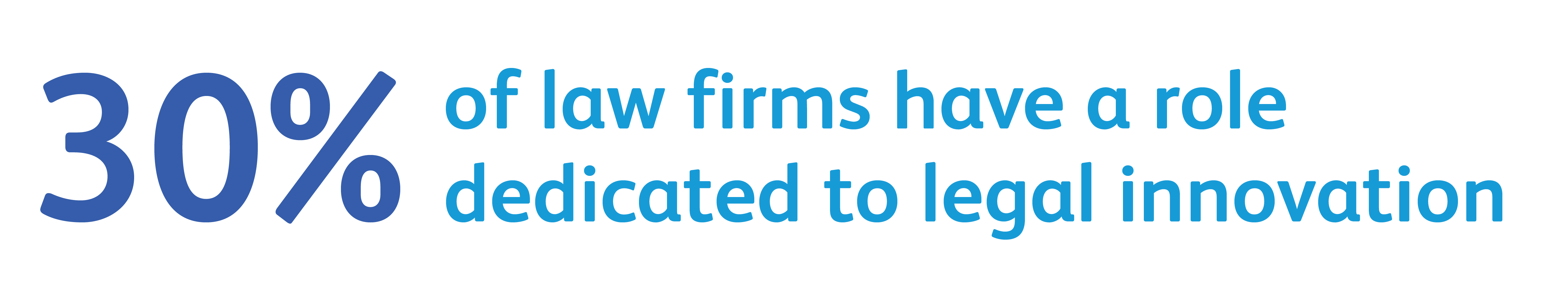The why is clear, but the path to innovation is still a little murky. Some firms are addressing the demand by creating entire innovation departments. Others are hiring roles focused solely on innovation initiatives. The 2018 Aderant Business of Law and Legal Technology survey found that almost 30 percent of respondents had someone at their firm tasked specifically with the responsibility of innovation. While large law firms are most likely to have established innovation roles, law firms of all sizes can benefit from these roles. Law firms with dedicated roles are much more likely to deliver innovation, because despite their best intentions, lawyers that must also focus on billable hours will struggle to dedicate enough time to innovation to make true progress.