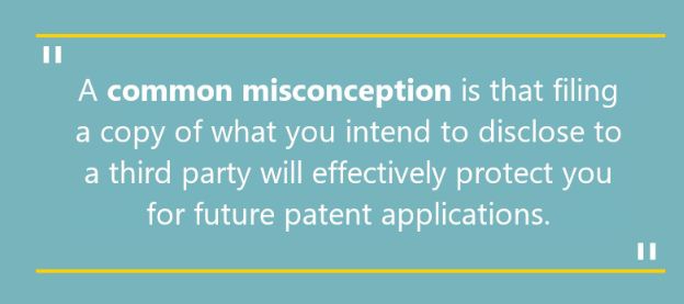 There is a common misconception that filing, at the patent office, a copy of whatever you intend to disclose to a third party will effectively protect you for future patent applications. Yet it isn’t quite that simple. UK and European law is relatively strict with regard to whether a valid priority claim can be established from a first filed document if it doesn’t contain a clear indication of the scope of the invention — ideally in the form of patent claims and/or corresponding statements within the description.