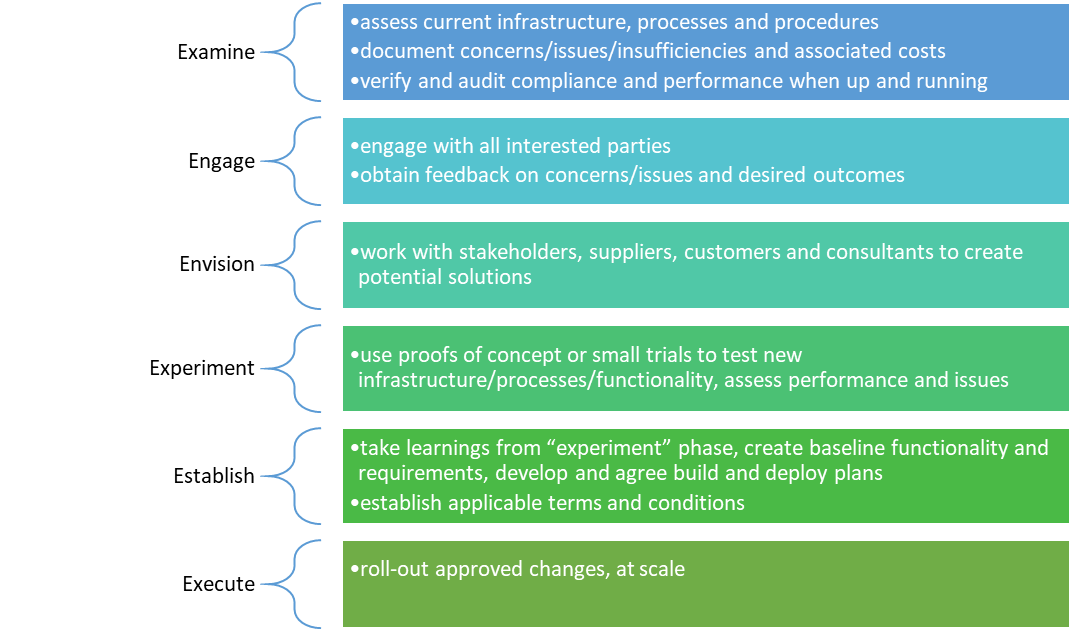 From a legal perspective, those 6 elements are also relevant and, if followed, should reduce legal and business risk associated with any new digital transformation project. For the lawyers, the 6 elements mean the following: