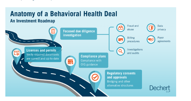 Regulatory diligence of behavioral health facilities requires a specific review of the seller’s compliance with various federal and state health care regulations. For any deal involving a behavioral health facility or service licensed by a state regulatory body or accredited by an accrediting body, diligence should be conducted to verify that: