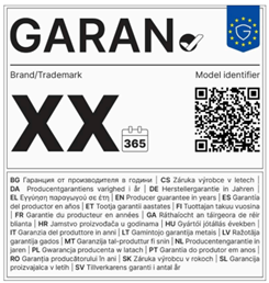 - If a free commercial warranty is offered lasting more than two years, then a label with information on the commercial warranty must also be provided. This label must also follow the template set by the EU. Again, there are different formats available for online and bricks-and-mortar sales. For example, for online sales, the notice will typically look like the one pictured below, though there is also a version that can be used as a nested display. For in-store sales, the notice can be in black and white. Where it is printed on packaging, it must meet specified dimensions and minimum font sizes.