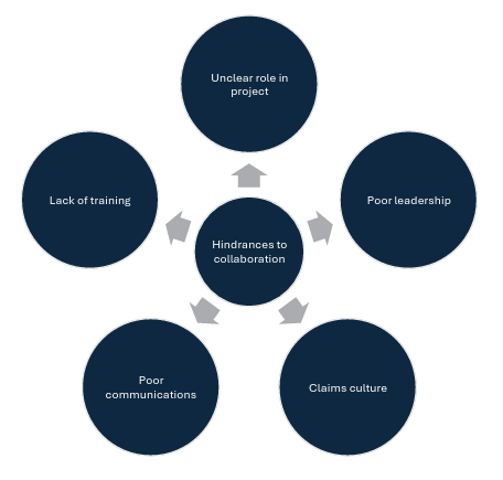 We identified unclear roles, or roles not set out clearly in the contract, as one of the challenges to collaboration. This can lead to confusion within the project, duplication of efforts, and conflicts among team members. Regarding the latter, where conflicts arose, this usually led to a reinforcement of the claims culture and a starting point for the breakdown in collaboration. Project participants should consider using a responsibility matrix to outline explicitly the roles and responsibilities of key personnel on the project.
