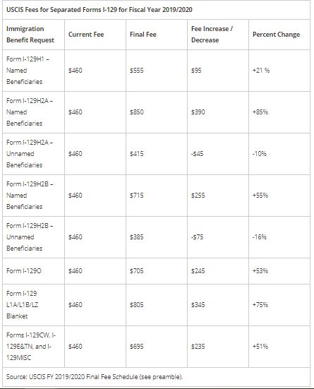 Of particular note, USCIS has implemented varying filing fees for Form I-129, petitions with USCIS for H, L, O, E, and TN visas. Under the Final Rule, each non-immigrant category will be subject to a separate fee rather than the current fee of $460.