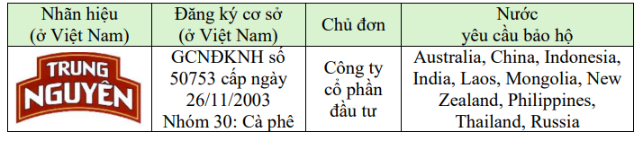 Ví dụ 1: Nhãn hiệu Trung Nguyên & hình (đăng ký quốc tế 1441923) như dưới đây đủ điều kiện nộp đơn đăng ký quốc tế theo Hệ thống Madrid chỉ định 10 quốc gia vì nó thỏa mãn cả 4 điều kiện trên