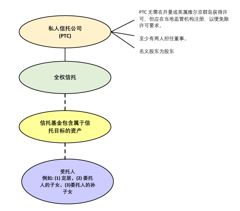 一般来说,PTC 充当单一信托或一组相关信托的受托人,不收取费用。例如,委托人可以在开曼或英属维尔京群岛(如适用)设立 PTC,作为下述信托的受托人,而不使用开曼或英属维尔京群岛的专业公司受托人的服务。委托人或其信任的顾问可以在 PTC 的董事会任职,这使委托人在管理信托资产方面具有更大的灵活性、控制力和连续性。在某些情况下,PTC 也可能是更具成本效益的解决方案。开曼或英属维尔京群岛的 PTC 不受开曼或英属维尔京群岛(如适用)的监管和许可要求,但须遵守某些要求。