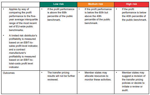 Under the proposal, member states shall structure their risk assessment in three transfer pricing risk zones, a so-called traffic light system. This approach is very similar to that taken by the Australian Taxation Office under its transfer pricing guidelines issued in 2019.