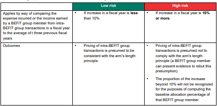 • For low-risk activities between a BEFIT group member and an associated enterprise outside the BEFIT group
