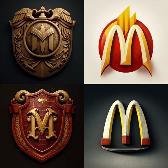Using MidJourney with prompt – “McDonalds Emblem but not McDonalds”