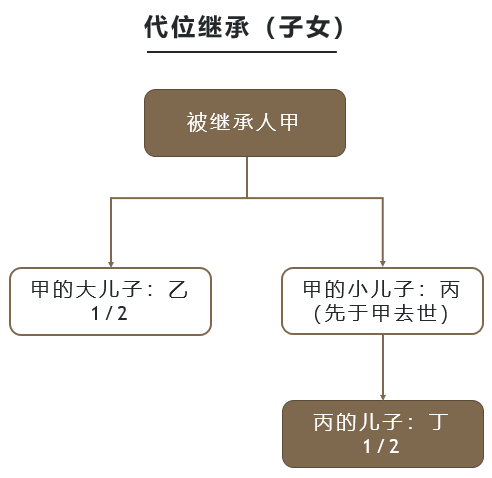 情景2:被继承人甲有乙和丙两个儿子。丙罹患癌症,在甲去世前一个月先行离世,留有一子叫丁。