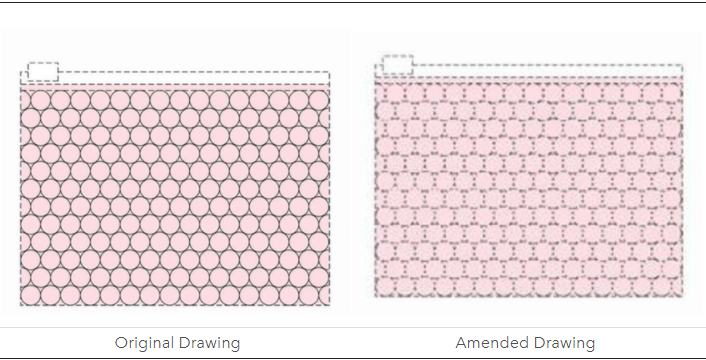 To formally establish the pouches as a brand trademark, Glossier filed an application (Serial No. 88,422,357) with the USPTO in 2019 claiming rights in the “color pink as applied to bags featuring lining of translucent circular air bubbles and a zipper closure” as pictured below: