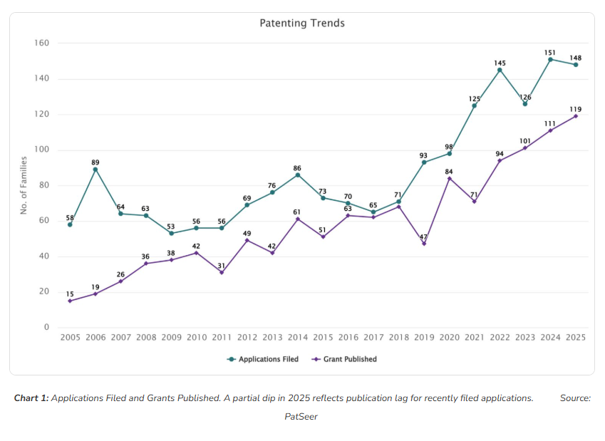 China follows with 294 families, a figure that demands serious attention. Chinese assignees are not simply licensing from Western innovators they are positioning for both domestic market protection and potential global generic or biosimilar plays. India’s 69 families, while smaller in absolute terms, carry disproportionate strategic weight given the country’s Section 3(d) patent standards and its role as the world’s largest manufacturer of generic pharmaceuticals.