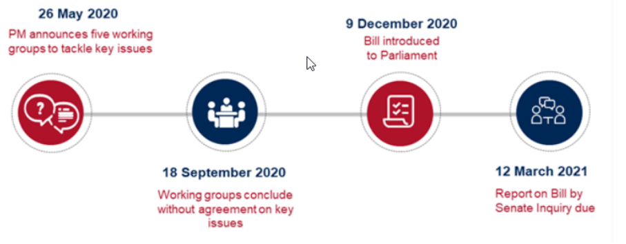 The Bill represents the culmination of a process which began (formally) in May this year, when the Prime Minister announced the establishment of five working groups. These working groups were made up of employer and employee representatives and were given the task of tackling key issues in Australia's workplace relations system.