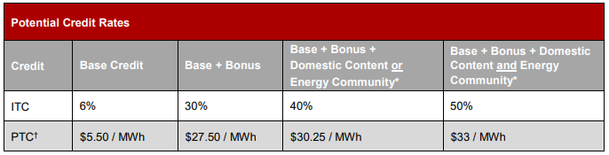 - New tax credits are available for emerging technologies, including energy storage and clean hydrogen.